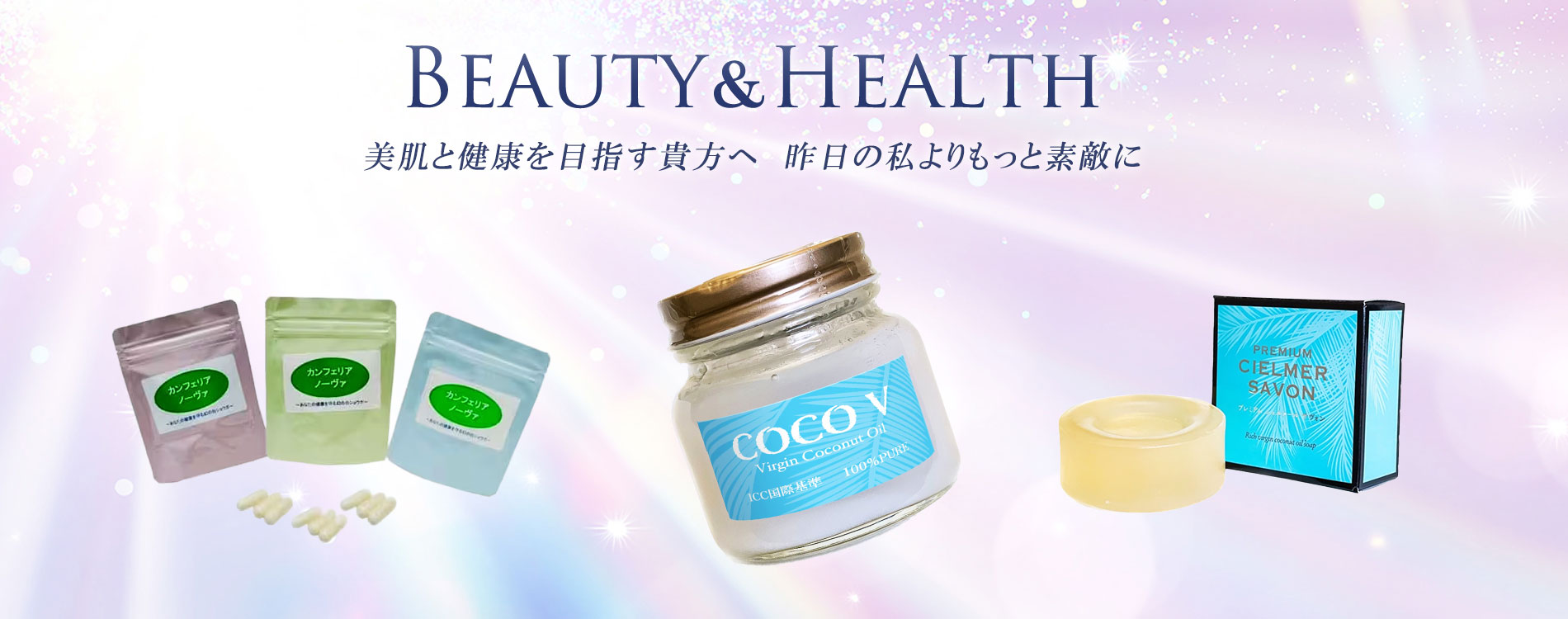 弊社では、加熱・機械処理を行わない無添加、常温自然発酵分離法のCOCOV(ヴァージンココナッツオイル)やカンフェリア ノーヴァ(幻の白ショウガ)などの自然食品・製品を販売しております。ヴァージンココナッツオイルは、近年の研究により抗菌や感染症などへの作用が認められており、保湿力も高いため日々のスキンケアや傷跡ケアとしても使用されています。また、天然100%の無添加の食品として飲食していただける安全安心な製品です。このオイルは"地球上で最も健康に良いオイル"と発表されている、正に"塗って良し食べて良しの万能オイル"なのです。食品として経口摂取・患部に直接塗布して使用することで、様々な症状を軽減させることが可能です。