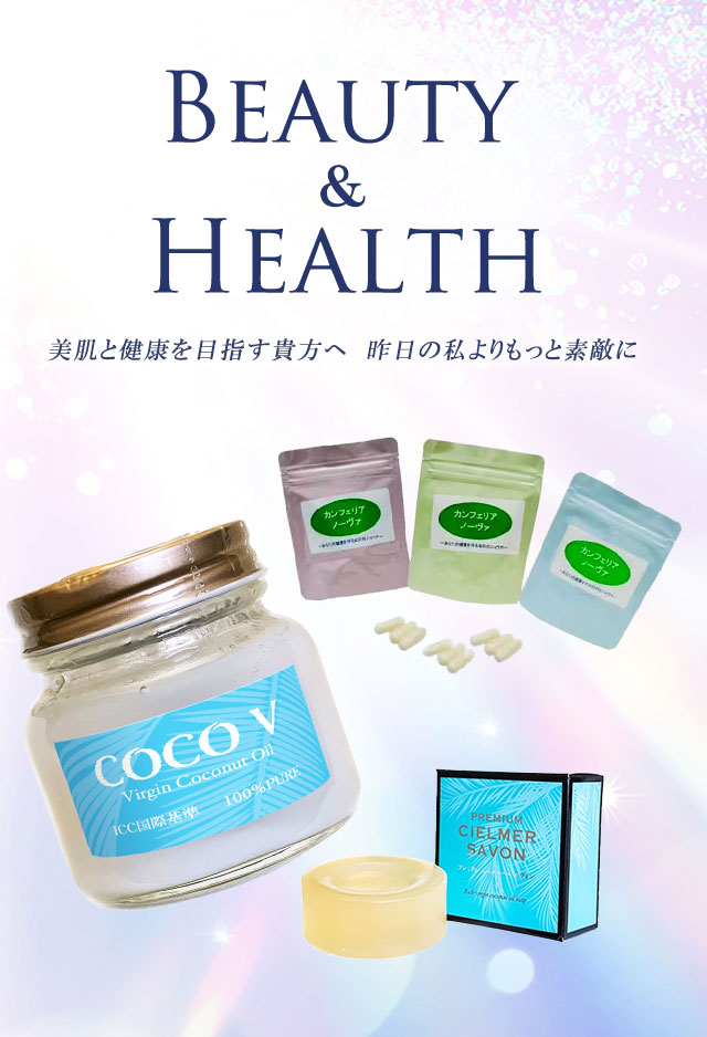 弊社では、加熱・機械処理を行わない無添加、常温自然発酵分離法のCOCOV(ヴァージンココナッツオイル)やカンフェリア ノーヴァ(幻の白ショウガ)などの自然食品・製品を販売しております。ヴァージンココナッツオイルは、近年の研究により抗菌や感染症などへの作用が認められており、保湿力も高いため日々のスキンケアや傷跡ケアとしても使用されています。また、天然100%の無添加の食品として飲食していただける安全安心な製品です。このオイルは"地球上で最も健康に良いオイル"と発表されている、正に"塗って良し食べて良しの万能オイル"なのです。食品として経口摂取・患部に直接塗布して使用することで、様々な症状を軽減させることが可能です。
